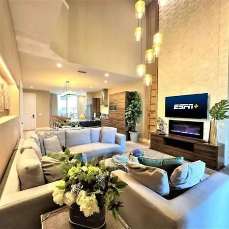 Featuring a heated pool, the 4-bedroom Modern 4 En Suites W Private Hot Tub Bbq Grill is nestled in the Celebration district and offers guests to relax in a Jacuzzi. Offering Wi-Fi, this 4-bathroom villa is located within a 15-minute drive of the educational Epcot Disney Theme Park.